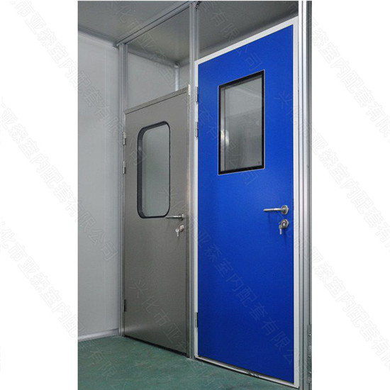 钢质 净化门减少对地的冲突,开关门省力,减少噪音、底部选用主动升、降地条,可以更好的确保净化室的气密性。具有外观漂亮、平坦、强度高、耐腐浊不积灰、不发尘、易清洁等长处,且装置便利、快捷。 钢质净化门选用包墙不锈钢门框,彩钢板或不锈钢门扇,产品全体功能杰出。